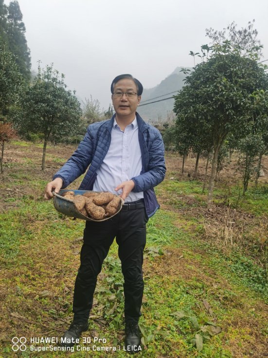 而在产业帮扶上,杨松展现出了一名老驻村的敏锐与韧性。面对社区穿岩天麻优质却滞销的困境,杨松主动化身推销员。他积极向驻村工作队长汇报,并争取到地矿院党委的大力支持,在全院发起“以购代扶”的倡议,同时广泛动员朋友圈、校友群等社会力量,不厌其烦地通过电话、微信介绍产品特性,同步传授煲汤、泡酒、磨粉等食用方法及保鲜技巧。从每一笔5斤、10斤的小订单做起,他常常忙碌至深夜。最终,通过多方努力,累计销售天麻近4000斤,实现销售额近10万元,直接助力60户贫困户获得可观分红,极大地振奋了社区产业发展的信心。